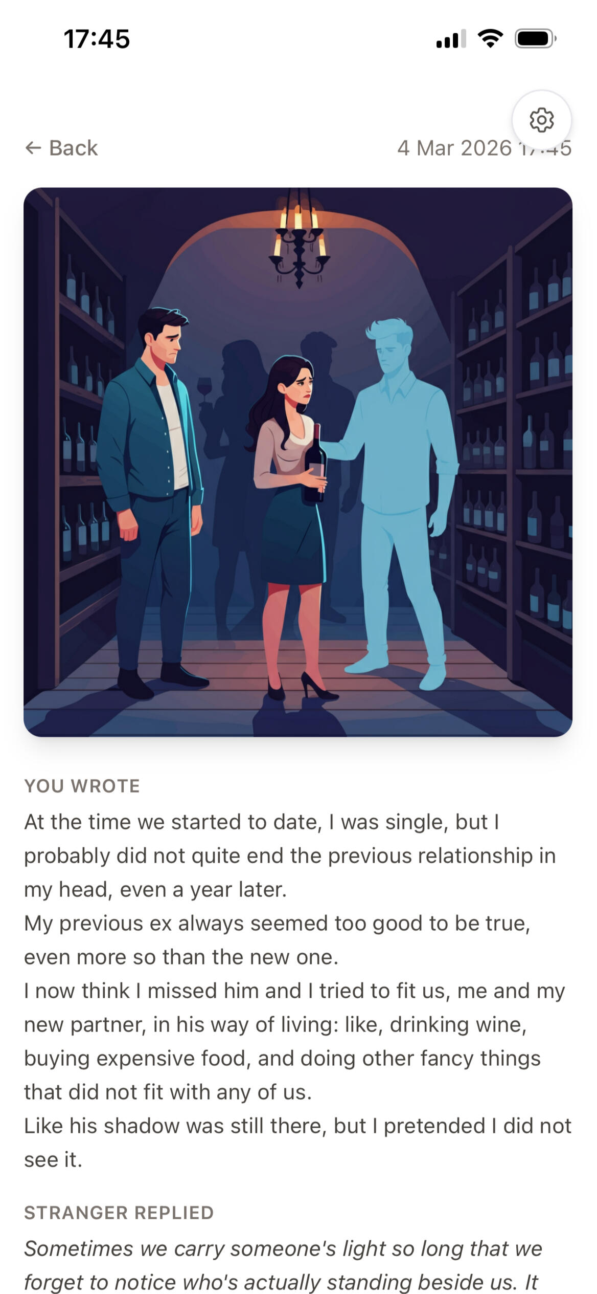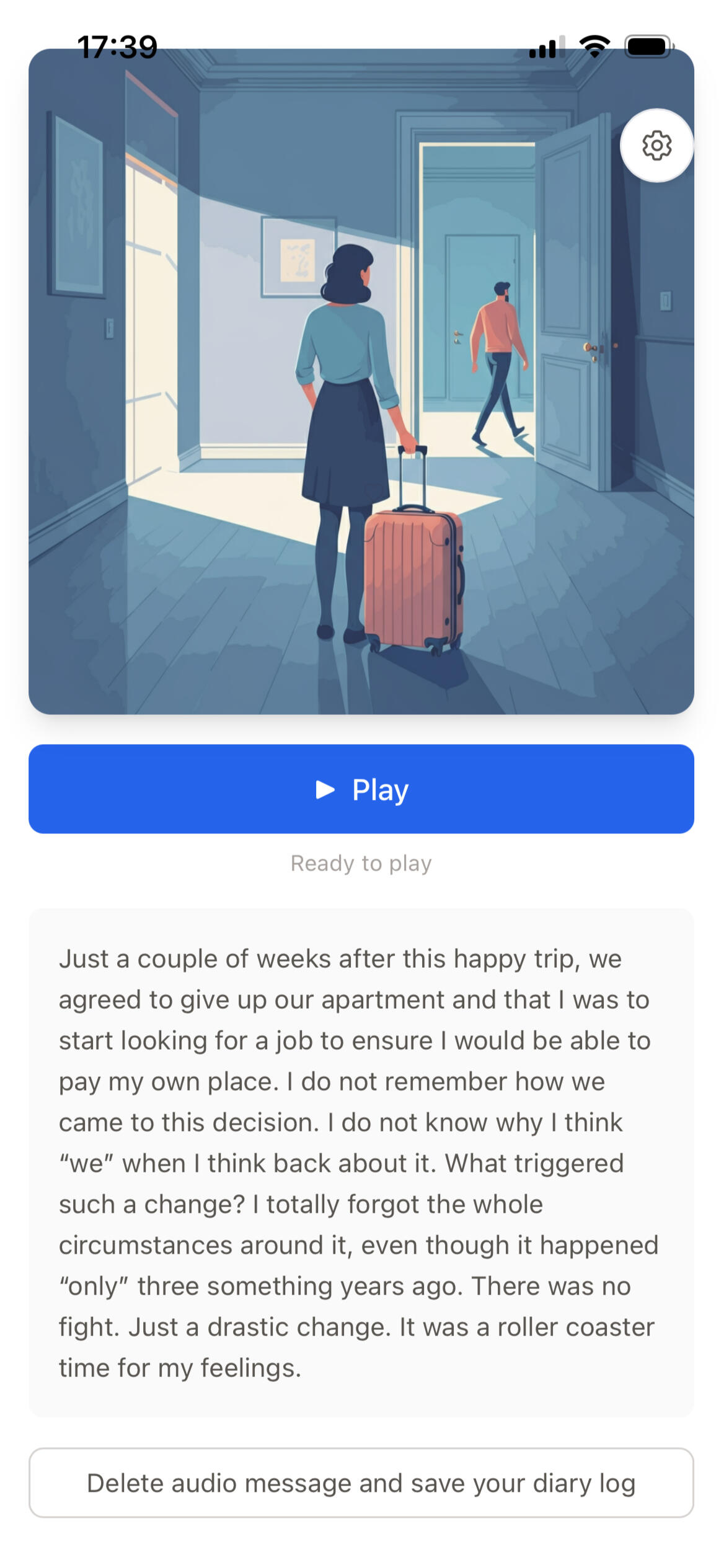 Even consistent journaling cannot always prevent rumination. As a consequence, you get stuck. A simple, multi-modal feedback helps to look on the situation from a new angle, to "rise" about it. A short, soothing voice note from a supportive stranger ensures you close your writing session with a good feeling.
